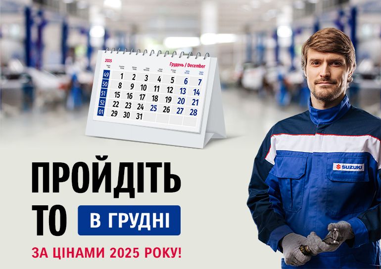 Успейте в декабре выгоднее пройти сервисное обслуживание Suzuki в нашем дилерском центре – по ценам 2025 года!